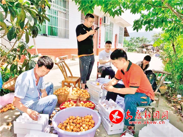 小哥告訴記者,他們公司于2015年開始進村攬收枇杷鮮果。每年這段時間更加派人手入村攬收,自己和同事每天8點就到村入戶,把事先準備好的水果網(wǎng)套、泡沫保鮮箱、紙箱送到有訂單的村民家中。