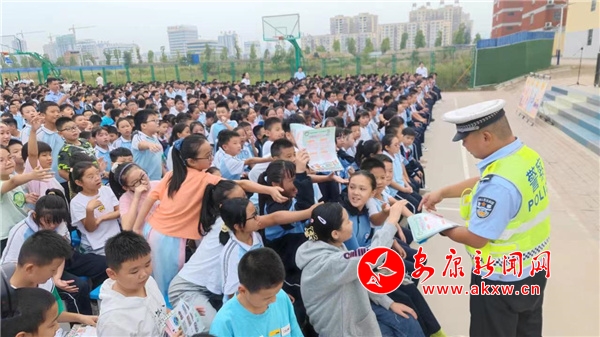 活動中,大隊民警結(jié)合轄區(qū)實際情況,首先通報了暑假期間全區(qū)道路交通安全,特別是涉及中小學(xué)生的典型事故案例,以身邊的事故教育身邊的人,以案說法、以案為鑒,希望同學(xué)們從中汲取深刻教訓(xùn),遠(yuǎn)離交通事故危害。其次,民警針對中小學(xué)生上下學(xué)出行特點,以“守法規(guī)知禮讓、安全文明出行”為主題,通過擺放宣傳展板、發(fā)放宣傳資料、以及互動問答等形式,圍繞學(xué)生正確走路、文明乘車、安全騎車幾個方面,向同學(xué)們宣傳講解日常交通安全常識,生活中出行應(yīng)當(dāng)注意的行為規(guī)范,發(fā)生交通事故后如何求助,教育引導(dǎo)同學(xué)們認(rèn)真遵守道路交通安全法規(guī),牢固樹立交通安全文明意識,做到知危險會避險,守法規(guī)知禮讓,真正提高安全防范意識和自我保護(hù)能力。