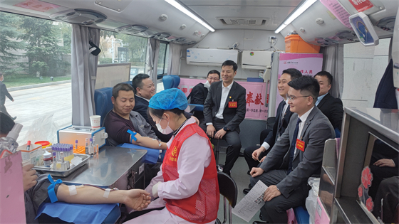 活動現(xiàn)場,參加共青團安康市第五次代表大會的代表們利用會議間隙陸續(xù)來到獻血車前,在血站工作人員的指引下有序進行填表登記、測血壓、血液初篩、獻血等程序,用實際行動詮釋團員青年的責(zé)任與擔(dān)當(dāng)。