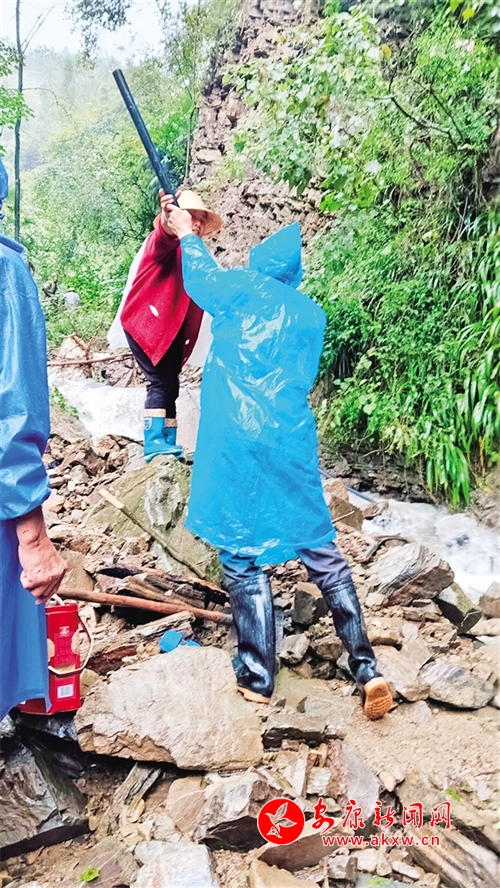 10月5日,紫陽縣高橋鎮(zhèn)雙龍村村“兩委”干部和村級水管員堅(jiān)守崗位,排查搶修飲水管道。胡波 田自國 攝