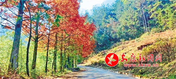 車子沿著山路繼續(xù)往上,途中時不時掠過一排排水杉,水杉的顏色有綠有黃、有深有淺,高大挺拔、直入云端。偶爾有幾棵同類型品種夾雜其中,已全然呈現(xiàn)出上下一體的棕黃色。在太陽的照射下,仿佛是身披金黃鎧甲的戰(zhàn)士,堅(jiān)韌有力。枝葉在微風(fēng)中輕搖,沙沙地響,視聽一體的感覺,不覺教人沉醉其中。