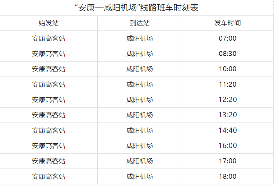 “安康—咸陽(yáng)機(jī)場(chǎng)”客運(yùn)線路發(fā)車時(shí)間調(diào)整
