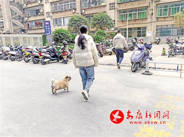 3月16日,安康中心城區(qū)某小區(qū)內有市民遛狗不牽繩。鄭時根 攝