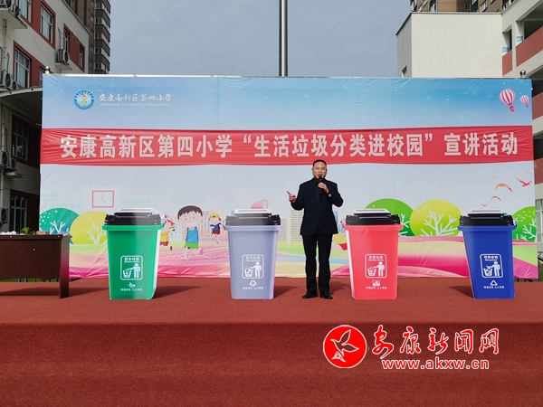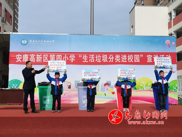 本網(wǎng)訊(通訊員 王宗濤)“同學(xué)們,我們是環(huán)境保護小天使,我們要讓山更青,水更綠,天更藍,我們生活的家園更美麗!我們應(yīng)該養(yǎng)成垃圾分類的好習(xí)慣?!?月9日上午,春陽燦爛的安康高新區(qū)第四小學(xué)的操場上,生活垃圾分類“進校園”宣講活動火熱進行中。