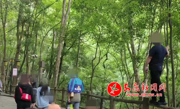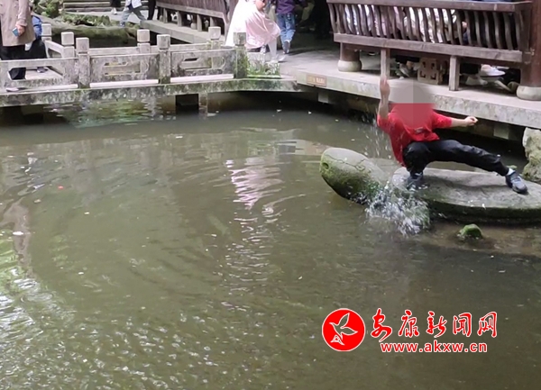 5月2日,香溪洞風(fēng)景名勝區(qū)有游客違反景區(qū)安全規(guī)定,存在攀爬護欄,下池嬉水等不文明旅游行為。(實習(xí)記者 冉麗雯)