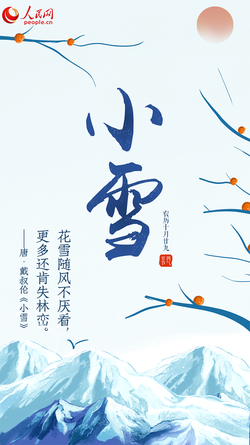 小雪之時(shí),雖寒氣來(lái)襲,冷風(fēng)直撲,但也能從中找到一份獨(dú)特的浪漫?!盎ㄑ╇S風(fēng)不厭看,更多還肯失林巒”,唐代詩(shī)人戴叔倫看著窗前飄揚(yáng)的花雪,洋洋灑灑飛到山林之中,甚是好看;“滿城樓觀玉闌干,小雪晴時(shí)不共寒”,宋代詩(shī)人黃庭堅(jiān)看到下雪頓覺(jué)開心,天晴后也沒(méi)那么寒冷;“小雪未成寒,平湖好放船”,宋代詩(shī)人韓維發(fā)現(xiàn)小雪雖至,湖面還未結(jié)冰,尚可乘船游湖、觀賞美景。