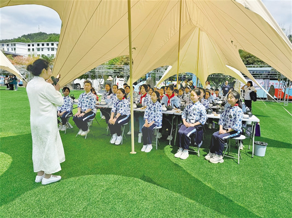 紫陽小學(xué)研學(xué)活動(dòng)聆聽茶藝課程。劉姝含 攝
