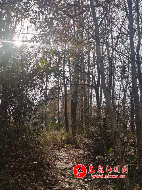 自彎彎樹(shù)往上再走一陣兒,便到了平緩開(kāi)闊處。這里的林子里大多是松樹(shù),空氣中彌漫著一股清新而獨(dú)特的氣息,那是松香的味道。金黃的松針?shù)佋诘厣?,踩上去軟綿綿的,令人產(chǎn)生無(wú)限遐想。一只松鼠正在枝頭啃食松果,見(jiàn)有人走近,“嗖”的一聲跳躍到另一棵樹(shù)上,松果也隨之掉落,彈蹦著滾出老遠(yuǎn)。樹(shù)旁的寒莓交織如網(wǎng),下面零星地生長(zhǎng)著半枯的毛蕨,艷麗的火棘十分搶眼,一串串結(jié)滿枝頭,遠(yuǎn)遠(yuǎn)望去,就像個(gè)個(gè)待掛的大紅燈籠。一群群麻雀兒飛來(lái)飛去,呼朋引伴,嘰嘰喳喳,暢享著冬日陽(yáng)光下的溫暖。我們有說(shuō)有笑,沿著緩緩地小路徜徉,前行至又一道山梁。只見(jiàn)這里樺櫟高大,松柏森森,化香粗壯,青桐筆挺,猶如將軍列陣,威風(fēng)凜凜,又似衛(wèi)兵站隊(duì),夾道歡迎。在這幽深的林子里,有株柏樹(shù)傾而未倒,長(zhǎng)過(guò)小路的上方,無(wú)數(shù)枝條頑強(qiáng)挺立、狀如綠屏,竟形成一道靚麗的拱門(mén)。此時(shí),你當(dāng)停下匆忙的腳步,站在這高崗上放眼山形地貌,觀察四周景象,探尋相互關(guān)聯(lián),洞悉自然規(guī)律。你看,在那迂緩的山腳下,多是權(quán)木叢生藤蔓交織,少有茂密森林參天大樹(shù),而在這土地瘠薄、風(fēng)摧雨折的梁頂上,卻是古木高聳、巨樹(shù)林立,一定會(huì)覺(jué)得彩虹總在風(fēng)雨后,風(fēng)雨成材所必歷。更能體會(huì)到只有擇高處立身,于難中求進(jìn),無(wú)懼風(fēng)吹雨打、千磨萬(wàn)擊,方能根深葉茂、本固枝榮、堅(jiān)韌不拔、生機(jī)無(wú)限。