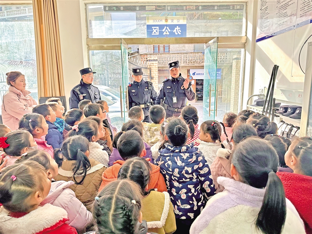 1月8日,紫陽縣公安局高橋派出所舉行“萌娃進(jìn)警營 警心伴童心”主題110宣傳日警營開放活動,邀請轄區(qū)學(xué)校師生走進(jìn)警營,感受警營文化。陳益謙 攝