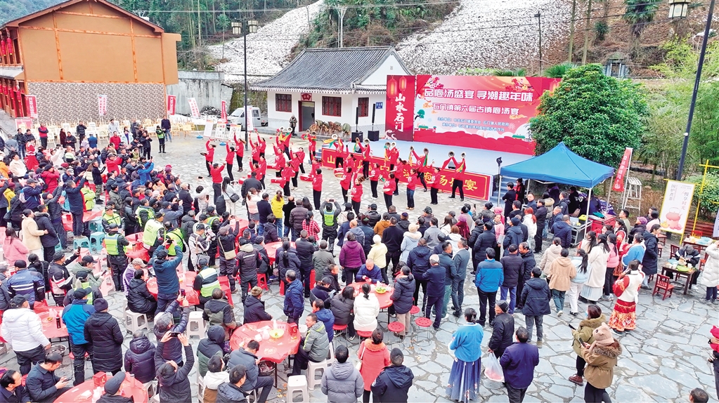 據(jù)了解,為了準備此次庖湯宴,去年12月底,石門鎮(zhèn)總投資120余萬元開始進行橫溪古鎮(zhèn)舊房改造提升項目,著力打造“古鎮(zhèn)庖湯宴”品牌。經(jīng)過項目改造,古鎮(zhèn)完成全面升級。不僅如此,石門鎮(zhèn)政府還不斷通過“線上+線下”的宣傳方式,提升當?shù)芈糜螛I(yè)影響力,積極制作旅游宣傳視頻,此次活動帶動引流2000人次。(柯明宇 攝)
