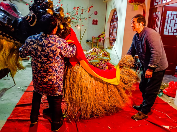 “每逢正月,玩燈是我們村的頭等大事,也是全村人都參與的慶典節(jié)目。各家各戶有手藝的出手藝、有力的出力。連外出務(wù)工和定居的村民,也都紛紛回鄉(xiāng),大家身著傳統(tǒng)服飾,舞中國龍、燒獅子、跑旱船、扭秧歌、唱花鼓戲……”說起玩花燈,李忠寶打開了話匣子,“每年雙河上街出龍,下街出船,雷家灣出獅子,滿架48盞花燈,半架24盞燈,從正月十三出燈開始,一直要玩到正月十六送燈,整個(gè)村子都沉浸在一片歡樂祥和的海洋里?!?/p>