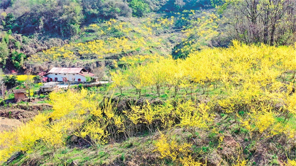 “連翹的葉、花、果具有藥用、食用、茶飲、美容等功效,而且耐寒、耐旱、耐貧瘠?!标R永軍介紹,連翹早春先花后葉,花開香氣淡艷,滿枝金黃,艷麗可愛,是早春優(yōu)良觀花灌木,一般種植2至3年才能受益。