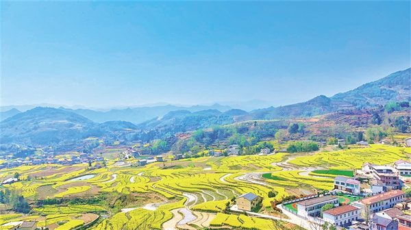 此時,正值油菜花的最佳觀賞季節(jié),踏入漩渦鎮(zhèn),仿若踏入了一個被歲月遺忘的世外桃源。山巒連綿起伏、梯田層層疊疊如天梯般蜿蜒而上,大者如曲池,小者似新月,在陽光下閃耀著金色的光。