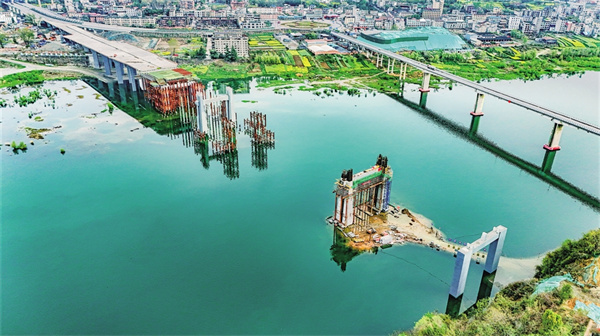 橋梁上部結(jié)構(gòu)開(kāi)始施工 安康新關(guān)廟漢江大橋“破水而出”