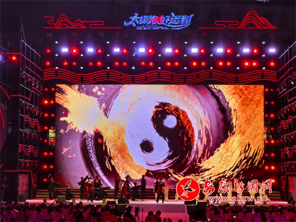 夜幕降臨,開幕式現(xiàn)場美輪美奐、氣勢恢宏。燈光秀、歌舞秀拉開活動帷幕,博得雷鳴般的掌聲。21個鎮(zhèn)代表隊登臺亮相?!盁熁ㄐ恪辫矈Z目,化作多彩光芒,點(diǎn)亮太極城的夜空。伴隨著現(xiàn)場觀眾的激情吶喊,文藝節(jié)目相繼上演,歌伴舞《沖呀!去旬陽》、旬陽好物旬陽非遺推介、舞蹈《舞動長樂紅》、民歌聯(lián)唱《姐不約郎郎不來》、千人復(fù)誦《太極·旬陽賦》、太極秀《太極江湖》、千人齊跳《太極舞》等節(jié)目,充分展示了旬陽的文化底蘊(yùn)、旅游資源、人文風(fēng)情,掌聲如潮、歡聲如雷。中國內(nèi)地歌手屠洪剛演唱的歌曲《你》《江山無限》《精忠報國》瞬間將現(xiàn)場氣氛燃爆。
