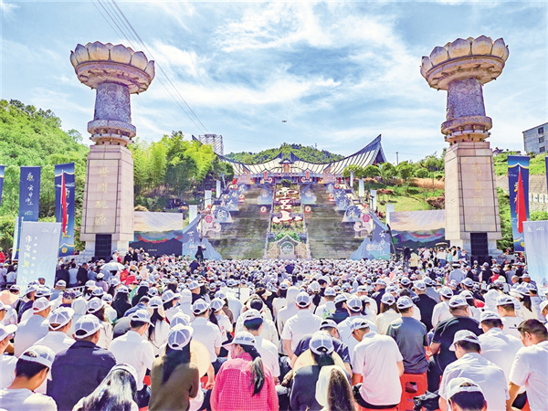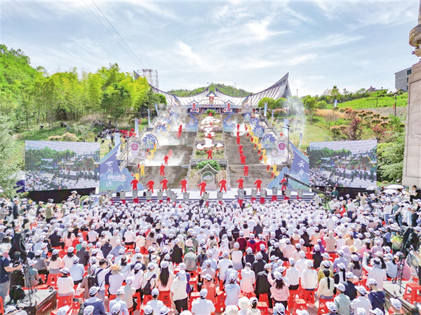 暮春的南宮山,蒼翠浸染。在悠揚(yáng)的《神奇美麗南宮山》旋律中,活動正式啟幕,《序章·天門啟道》《天玄·問道山河》《地杰·武韻巴人》《和鳴·萬象共生》四大篇章層層遞進(jìn)。伴隨著激昂的音樂,國樂表演《刀劍如夢》、竹海劍影《笑傲江湖》、巴人武韻《虎鈕錞于》、武術(shù)《天地人和》、舞+武《舞武對弈》等節(jié)目依次出場,活動現(xiàn)場鼓點(diǎn)如雷,舞者們騰空而起,剛猛的武術(shù)招式與充滿力量感的戰(zhàn)舞動作交織,每一次騰躍,都將現(xiàn)場觀眾的熱血與激情點(diǎn)燃。