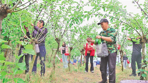 劉術(shù)榮的桑樹枝繁葉茂,桑葚掛滿枝頭,吸引了市民和游客觀光采摘。他每天請了十幾名工人幫忙,抓緊時(shí)間采收桑葚。經(jīng)過科學(xué)管護(hù),這片果桑園每年能產(chǎn)桑葚超過20噸,帶動30余戶村民實(shí)現(xiàn)穩(wěn)定增收。