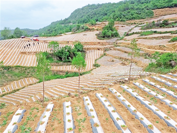 離開錢河梁,走進(jìn)海棠寺村的梯田里,種煙大戶吳義剛正迎著晨曦帶上20余名村民搶墑移栽。23年的種煙歲月在他臉上刻下溝壑,也沉淀出“致富良經(jīng)”。他瞇著眼睛笑著說:“去年新種的80畝煙田毛收入24萬,今年?duì)幦≡俣噘嶞c(diǎn),給孩子換臺好車?!碑?dāng)目光撫過嫩綠的煙苗,手掌摩擦著滴灌管道,吳義剛驀然間變得激動:“雖然今春干旱嚴(yán)重,但是政府配發(fā)的抗旱設(shè)備讓移栽成活率大大提升,我們的心血總算沒有白費(fèi)?!贝逯Р繒泟⒌瞧巾斨胰账闫甬a(chǎn)業(yè)增收賬:“今年450畝煙田已基本栽完,11個大戶帶著小戶干,戶均增收能破萬元。”