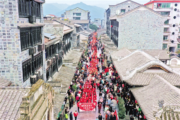 一縷微風(fēng)穿過,黃昏的老街各種顏色交織碰撞,給人無限遐想。街道兩旁,店鋪一家挨著一家,幾家店外排著長(zhǎng)隊(duì),生意火爆。漢服、旗袍走秀、火獅子、舞龍、漢調(diào)二黃、花鼓戲入眼入耳?;秀遍g,昔日的場(chǎng)景猶如一幅畫卷徐徐展開。