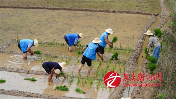 6月5日,走進城關鎮(zhèn)漁灣村麻莊組,一片熱火朝天的農(nóng)忙景象映入眼簾。農(nóng)技人員與農(nóng)戶們并肩作戰(zhàn),共同進行水稻插秧作業(yè)。劃線分區(qū)、精準配肥、均勻撒肥、有序插秧……每一項工作都進行得有條不紊,大家分工明確、配合默契,田間地頭處處洋溢著忙碌而歡快的氣息。