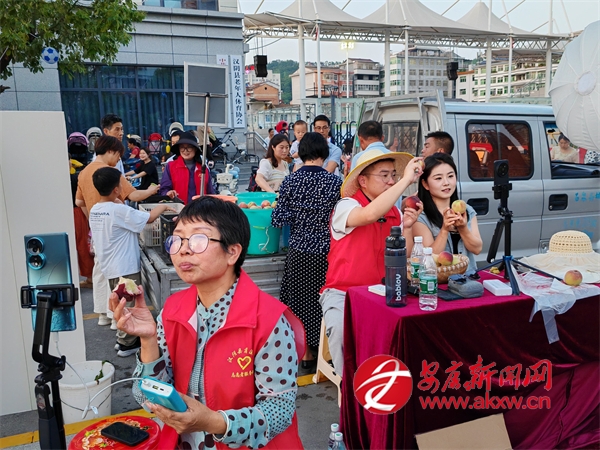 △ 漢陰縣蒲溪鎮(zhèn)第一書記組團(tuán)在縣村超比賽場地外直播賣桃子,累計幫銷紅桃2.8萬余斤。