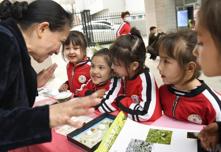 2024年4月16日,在新疆烏魯木齊市天山區(qū)南灣街街道,昌樂園幼兒園的小朋友在老師的講解下了解春蠶的生長過程。谷雨節(jié)氣將至,烏魯木齊市一些社區(qū)紛紛開展形式多樣的主題活動(dòng),讓市民了解有關(guān)谷雨節(jié)氣的知識(shí),體驗(yàn)傳統(tǒng)文化的魅力。