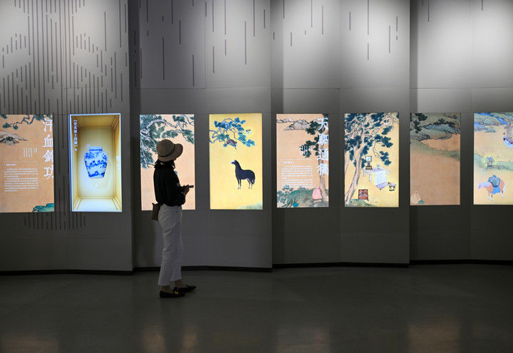 2025年6月3日,觀眾在故宮大高玄殿數(shù)字館參觀“騰躍古今——馬文化數(shù)字藝術(shù)展”。大高玄殿數(shù)字館是故宮博物院第二座全數(shù)字形態(tài)的展廳,是一座集展覽、研究、教育等功能于一體的多元化數(shù)字空間。此次舉辦的“騰躍古今——馬文化數(shù)字藝術(shù)展”,聚焦于“馬”的精神象征及其與人類社會(huì)的緊密聯(lián)系,重點(diǎn)展示了故宮博物院院藏與馬相關(guān)500余件超高清文物影像數(shù)據(jù),借助沉浸式投影、三維互動(dòng)、知識(shí)圖譜等前沿技術(shù)手段,讓這些難得一見的珍貴文化遺產(chǎn)“活起來”。