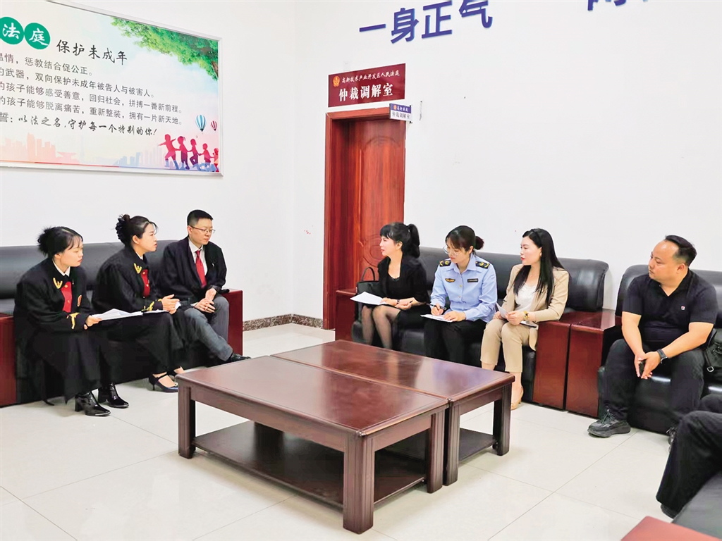 高新法庭特邀人大代表、政協(xié)委員、市場(chǎng)監(jiān)管工作人員及科創(chuàng)園企業(yè)代表走進(jìn)法庭,聯(lián)合開(kāi)展調(diào)解工作。趙永佳 攝