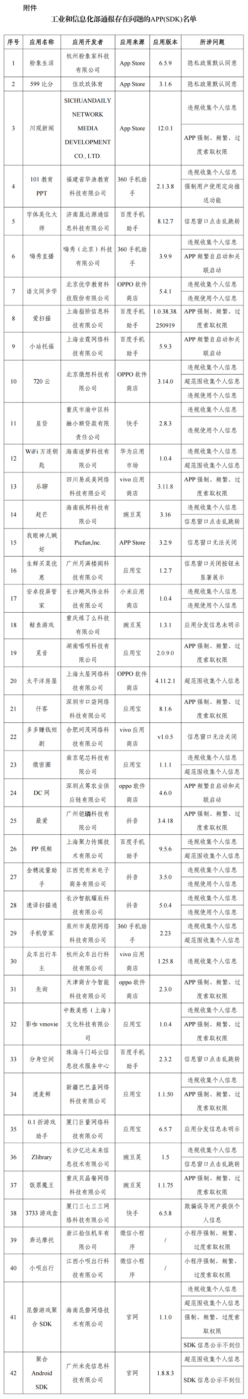 通報:工信部通報!這42款APP及SDK存在侵害用戶權益行為