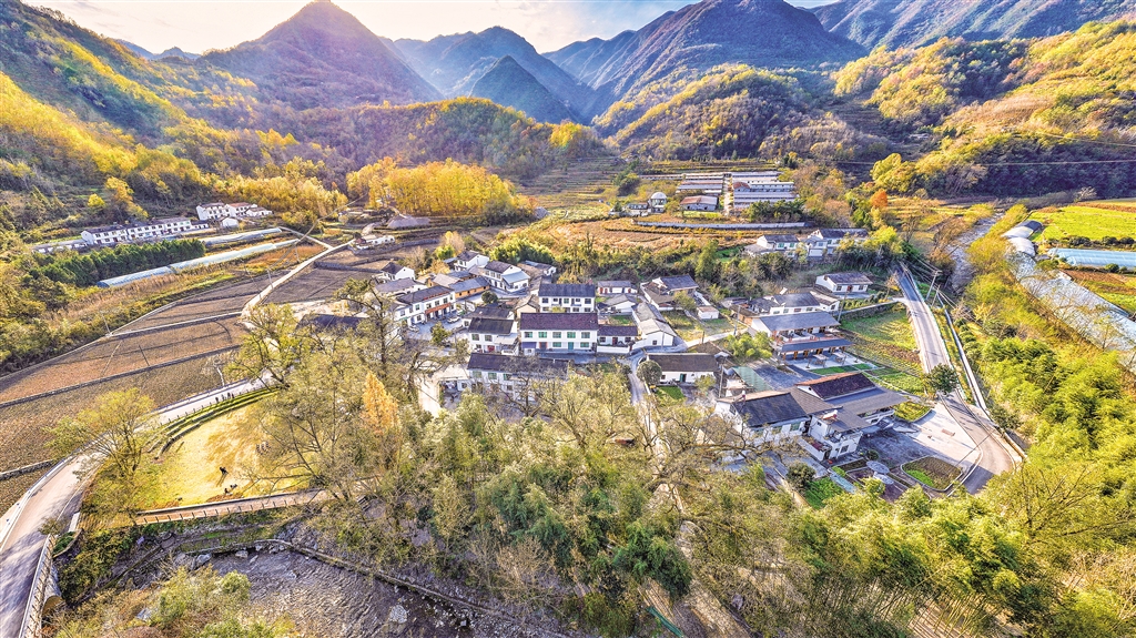 11月23日,夕陽下的石泉縣城關鎮(zhèn)雙嶂村風景如畫。董長松 攝