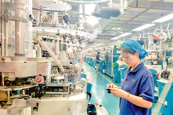 單個工人日均2000雙襪子只是這家企業(yè)的正常生產(chǎn)水平。他們以智慧工廠為目標(biāo),從原材料到成品主要由自動化設(shè)備按照系統(tǒng)指令自行完成,大幅提高生產(chǎn)質(zhì)效。