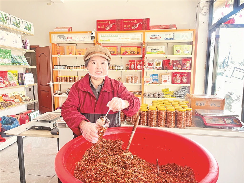 生意有了起色,丈夫的身體也逐漸康復,生活終于重新亮堂起來。作為鎮(zhèn)人大代表,劉小洪深知,一人富不算富,大家富才是真的富。她主動分享直播帶貨經(jīng)驗,帶動周邊村民參與特產(chǎn)加工和網(wǎng)絡(luò)銷售。她優(yōu)先聘請村里的留守婦女和困難家庭來幫忙,手把手教她們技術(shù)。為了保證產(chǎn)品的純正鄉(xiāng)味,她堅持從本村及周邊村采購黃豆、辣椒、野油菜、干豇豆等原材料,平均每年收購約1萬公斤黃豆、2000余公斤辣椒、2000余公斤野油菜及干豇豆,讓鄉(xiāng)親們的農(nóng)產(chǎn)品有了穩(wěn)定銷路,也變成了實實在在的收入。