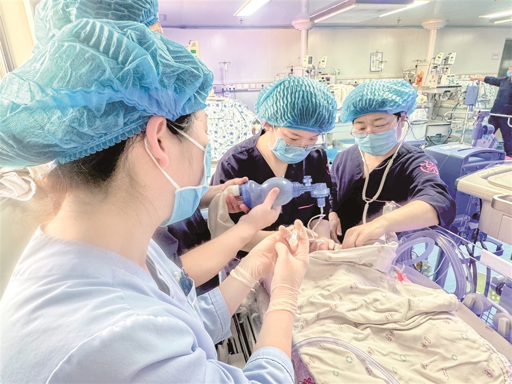 醫(yī)護人員為早產(chǎn)兒做系列搶救措施