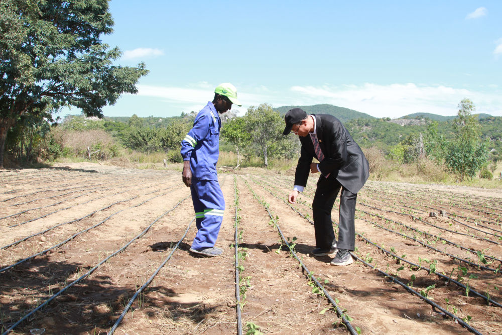 2025年5月14日,在位于津巴布韋中馬紹納蘭省的中國—津巴布韋農(nóng)業(yè)合作示范村,中方農(nóng)業(yè)專家指導(dǎo)當?shù)卮迕?。新華社發(fā)(塔法拉 攝)