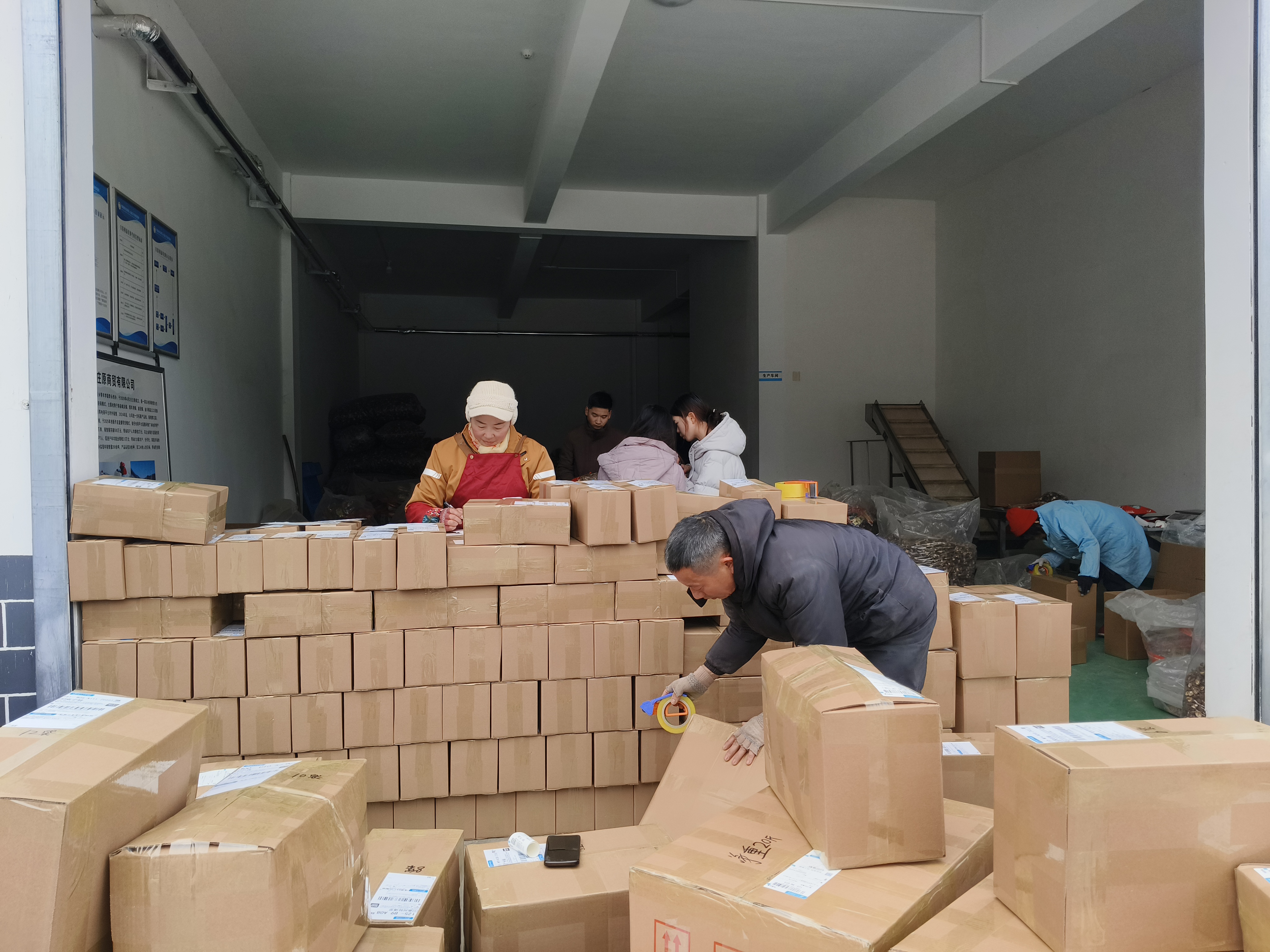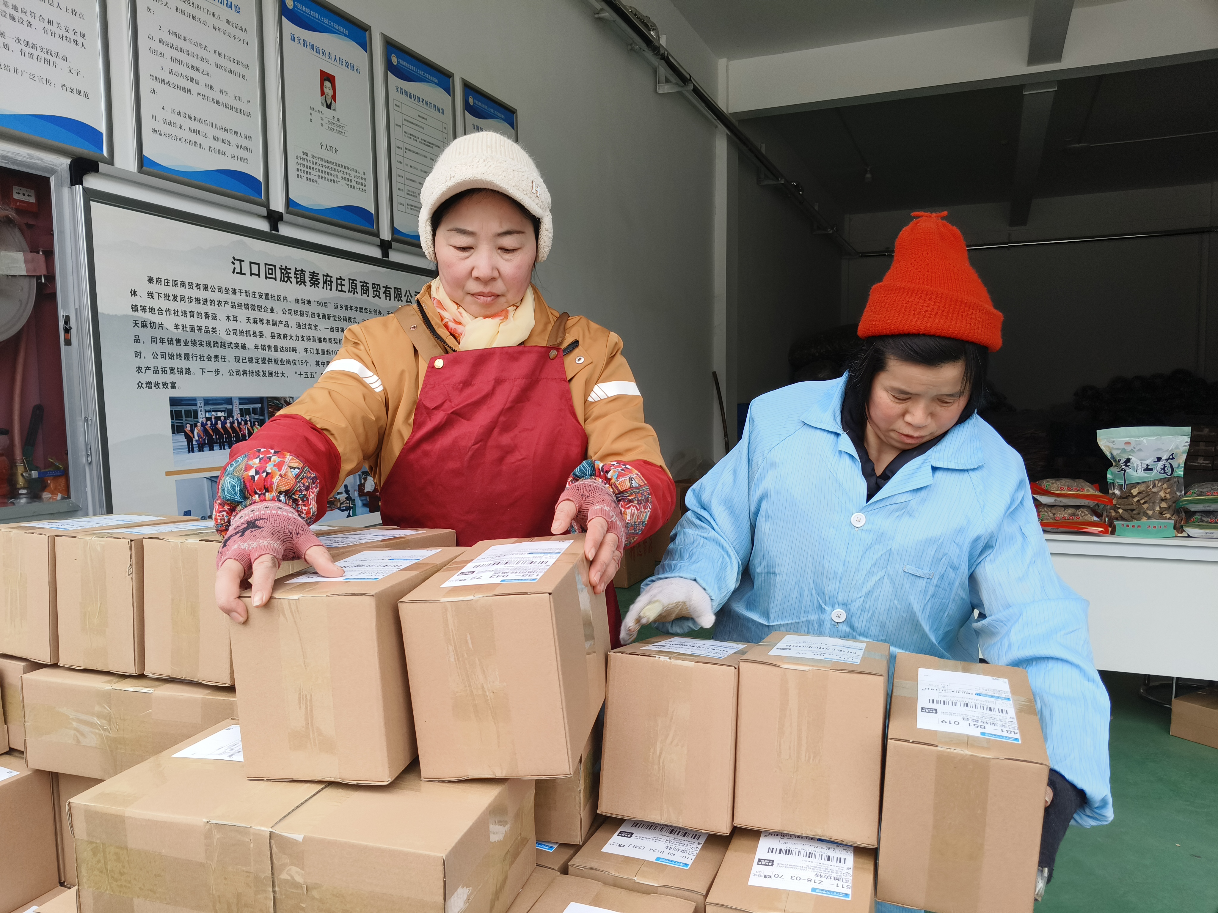 春節(jié)前夕,寧陜縣江口回族鎮(zhèn)秦府莊原商貿有限公司內一片繁忙,工人們忙著打包、發(fā)貨。近期,寧陜山珍線上銷量持續(xù)走高,日均發(fā)貨約700單。(劉長兵 攝)