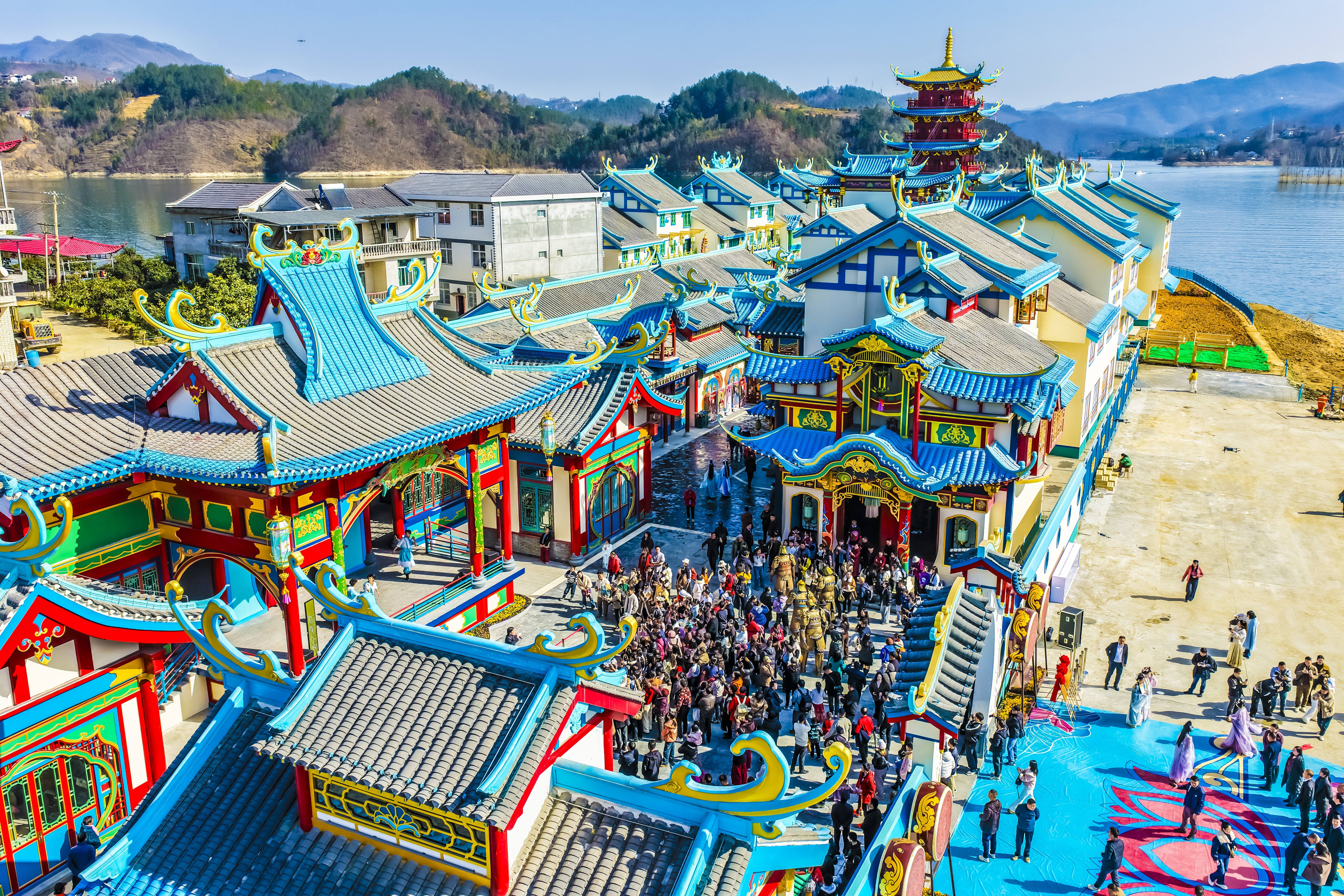 2月10日,安康瀛湖漢水街文旅影視基地建成開園。該項目以沉浸式演藝為核心抓手,重點打造岸上可停留、可反復(fù)進入的空間體驗,推動景區(qū)由觀光游覽型向觀光與體驗并重型升級。張忠 攝