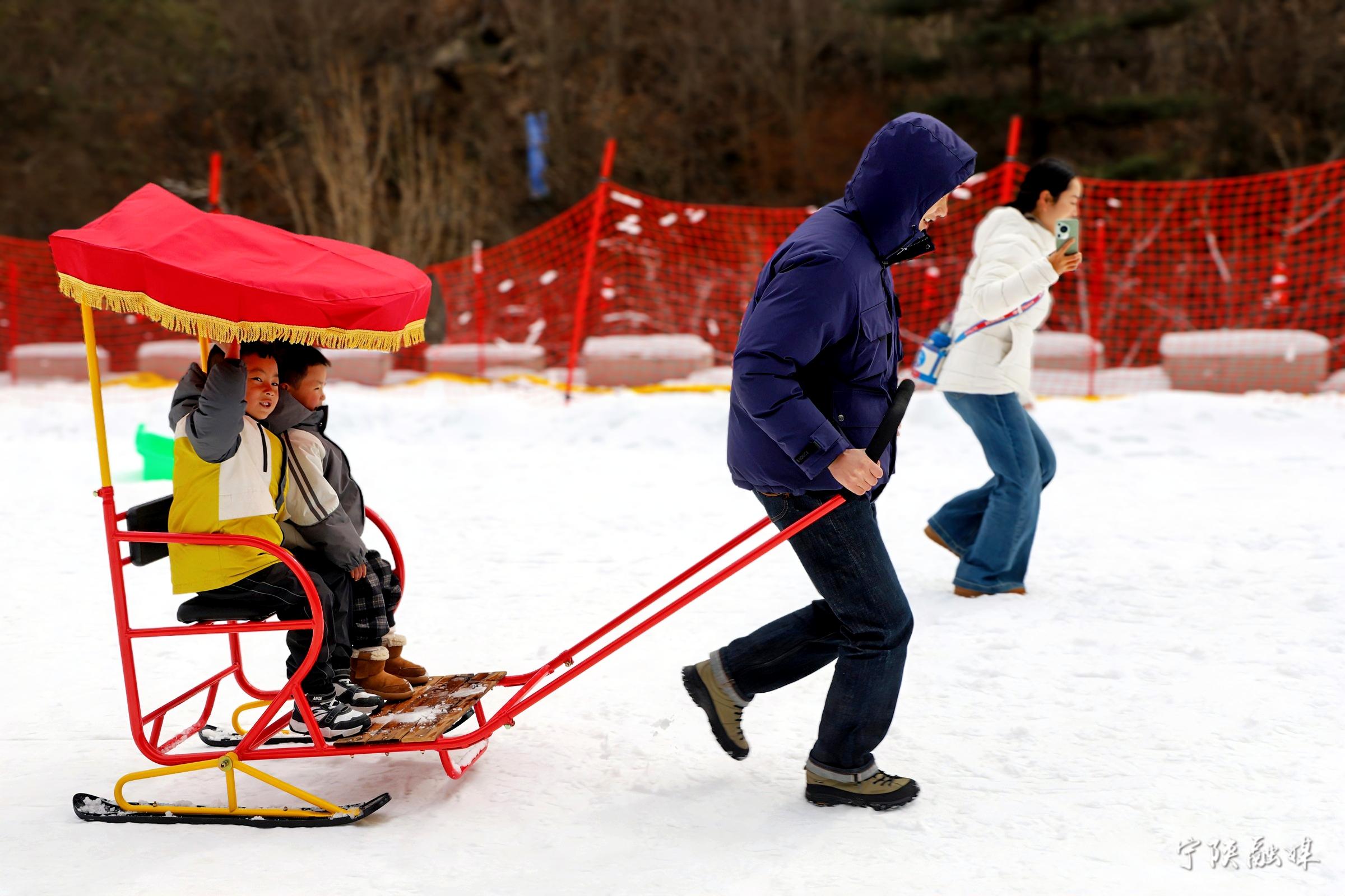 2月18日,游人在寧陜縣皇冠雪鄉(xiāng)體驗冰雪娛樂項目。當(dāng)日皇冠雪鄉(xiāng)接待游客1813人次。黃太萱 攝