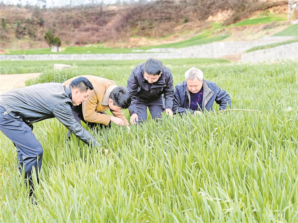 “這塊墑情不錯,但那邊靠坡的地有點干,施肥得區(qū)別對待。”2月24日,漢濱區(qū)農(nóng)業(yè)農(nóng)村局聯(lián)合相關(guān)部門組建技術(shù)服務(wù)隊,分赴各糧食生產(chǎn)重點鎮(zhèn)。汪德義帶著隊員們逐塊田排查,建立管理臺賬,針對不同苗情、墑情精準(zhǔn)開具“個性化處方”。農(nóng)戶圍在他身邊,聽得認(rèn)真,問得仔細。