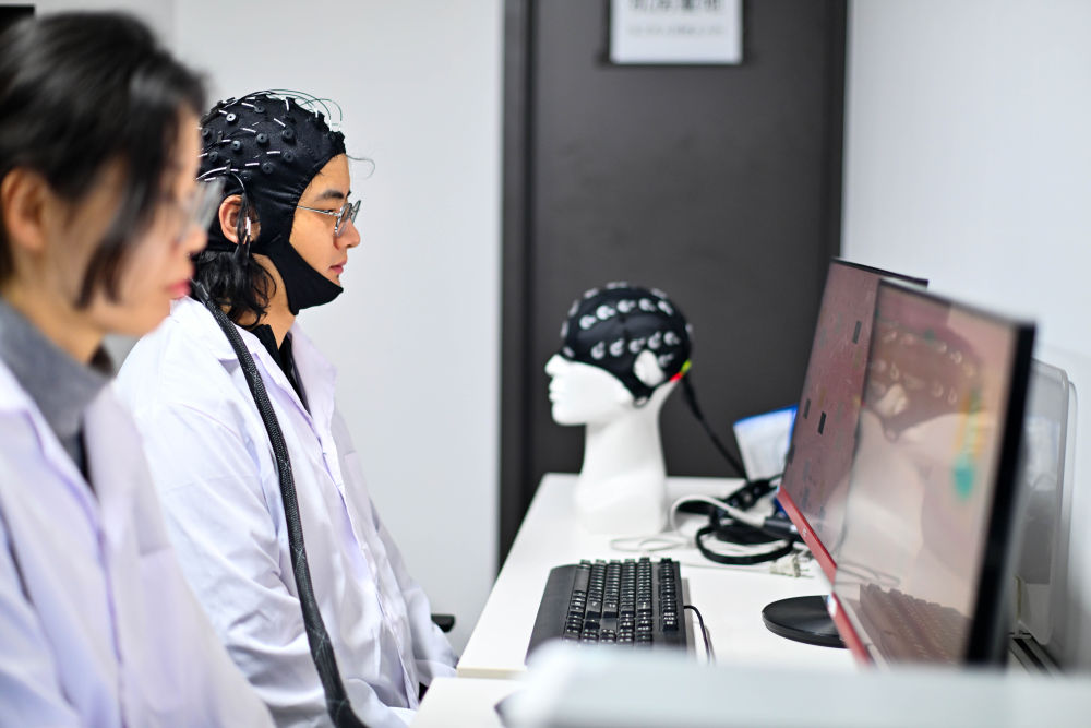 2026年2月27日,在位于天津濱海高新區(qū)的中電云腦(天津)科技有限公司,工作人員進行腦機接口技術測試。新華社記者 趙子碩 攝