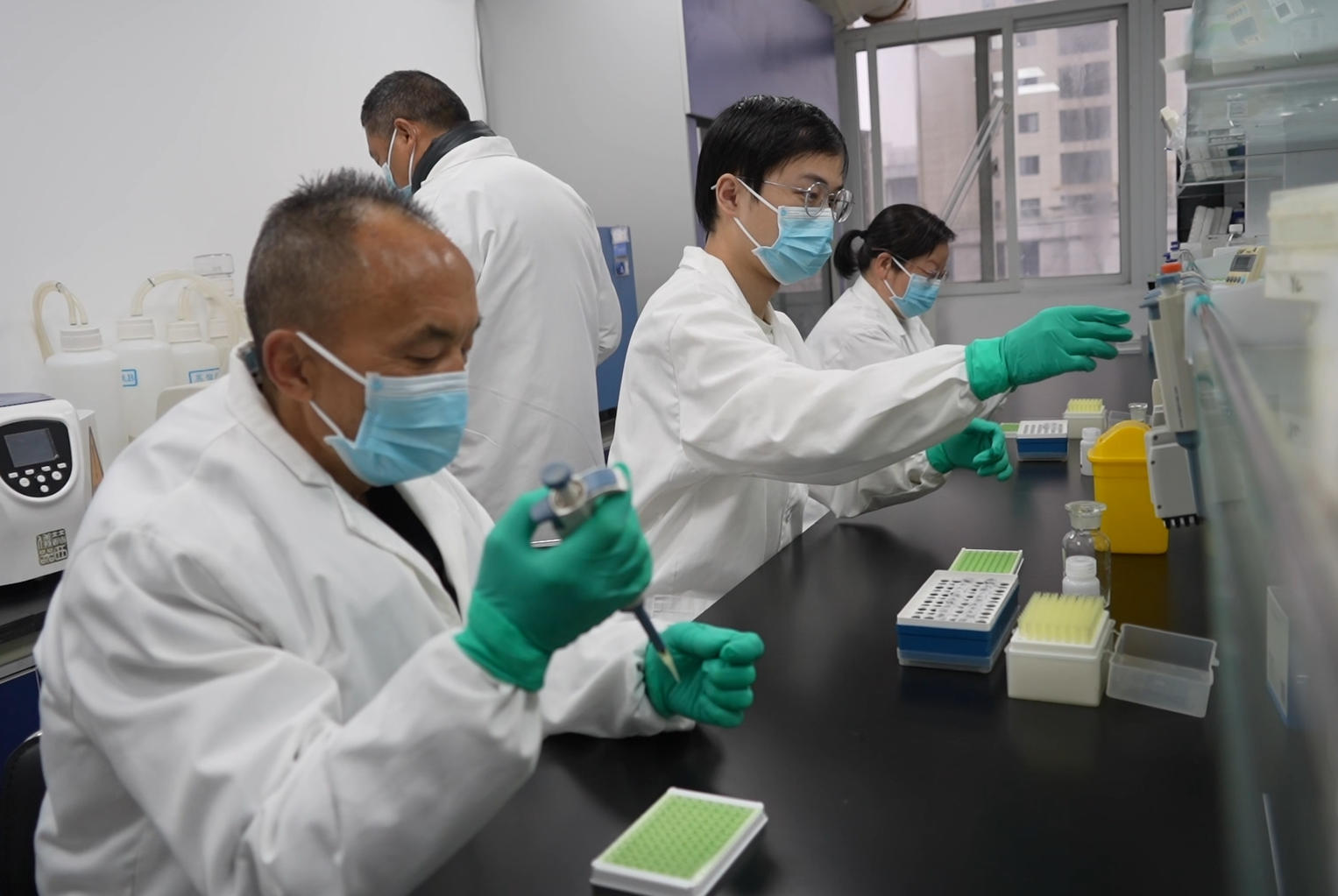 △ 畜牧獸醫(yī)中心工作人員正在檢測樣本