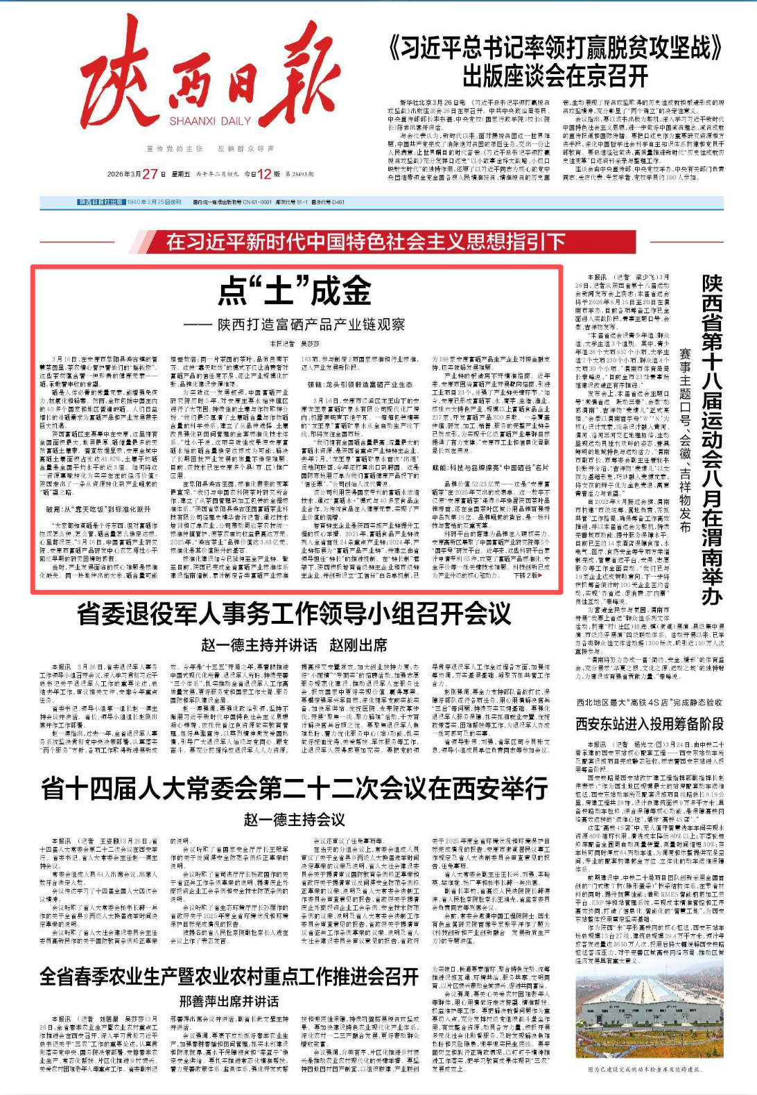 《陜西日報》丨點“土”成金——陜西打造富硒產(chǎn)品產(chǎn)業(yè)鏈觀察