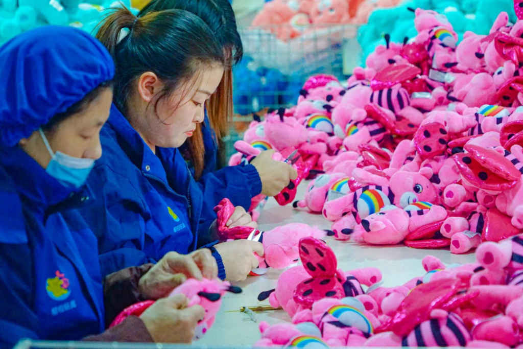毛絨玩具是安康特色產(chǎn)業(yè)體系中的另一個重要代表。很多人可能不知道,目前安康已發(fā)展成為全國第四大毛絨玩具生產(chǎn)基地,獲評“中國毛絨玩具產(chǎn)業(yè)新都”。截至2025年底,安康全市累計建成毛絨玩具和紡織企業(yè)811家(點),吸納就業(yè)群眾超2.2萬人,實現(xiàn)年產(chǎn)值100.21億元。企業(yè)日產(chǎn)能達(dá)到150萬只,產(chǎn)品出口全球80多個國家和地區(qū)。