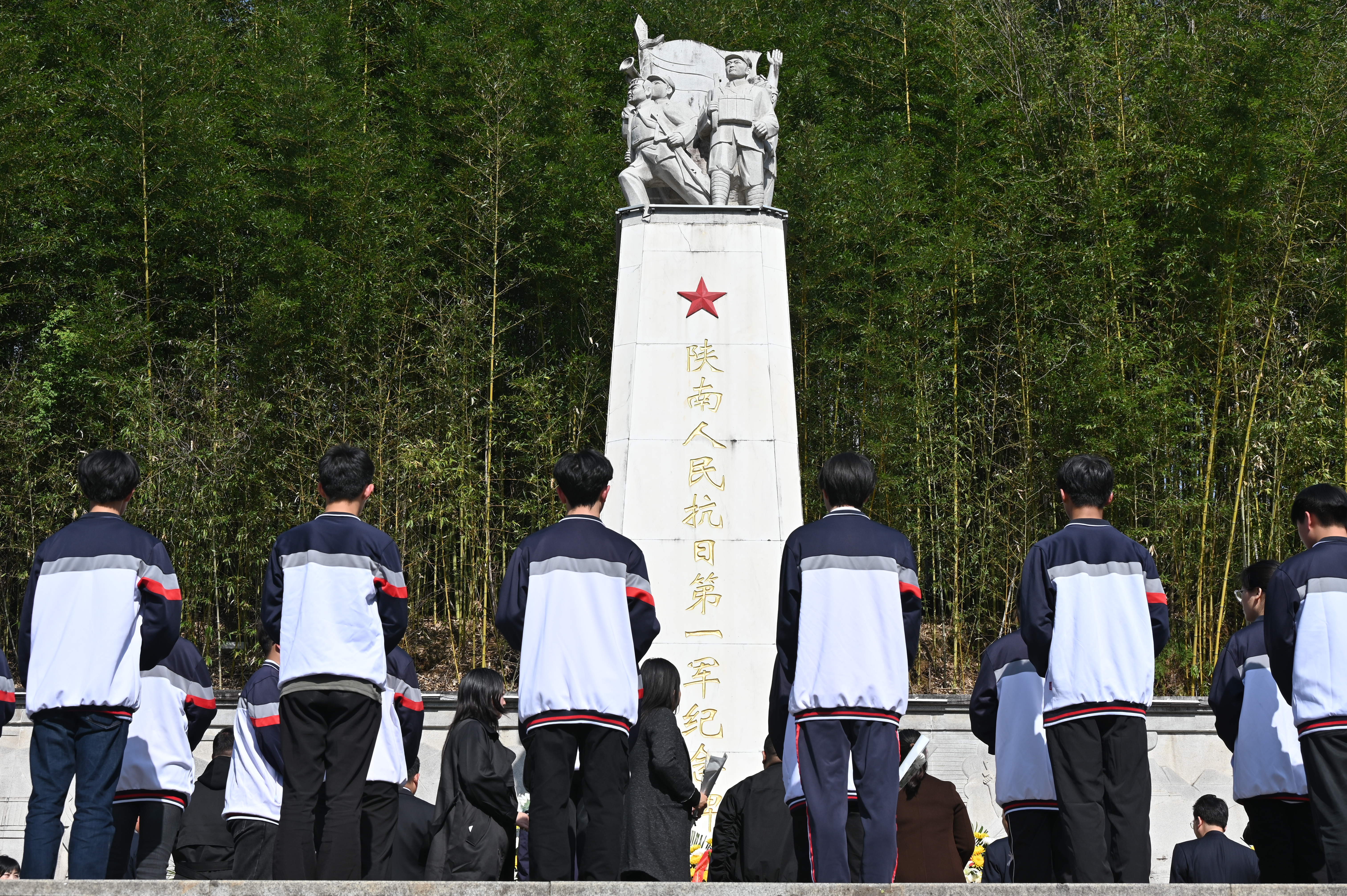 3月31日,安康職業(yè)技術(shù)學(xué)院組織師生赴漢陰縣開(kāi)展“漢陰尋跡、致敬英烈”活動(dòng),參觀了漢陰縣沈啟賢將軍故居、楊棄將軍紀(jì)念館。圖為陜南人民抗日第一軍紀(jì)念廣場(chǎng),師生代表敬獻(xiàn)花籃。 張智明 攝