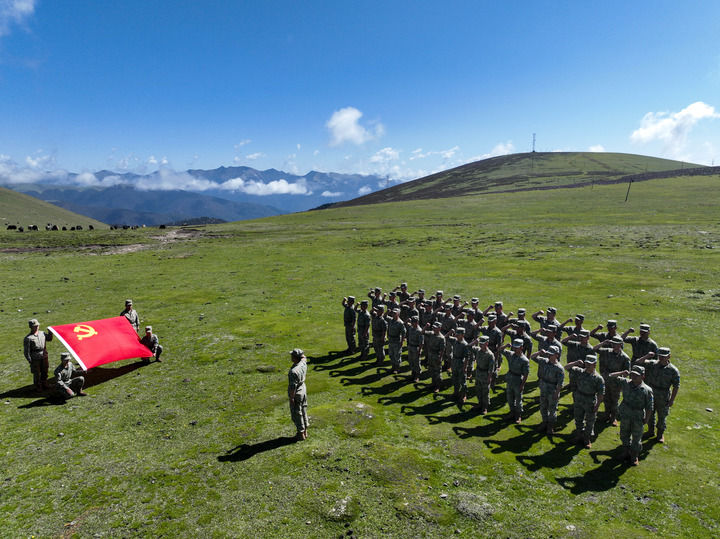 西部戰(zhàn)區(qū)空軍某團(tuán)遠(yuǎn)程機(jī)動(dòng)訓(xùn)練途中組織官兵舉行重溫入黨誓詞活動(dòng)(2025年6月30日攝,無(wú)人機(jī)照片)。新華社發(fā)(鄧世寧 攝)