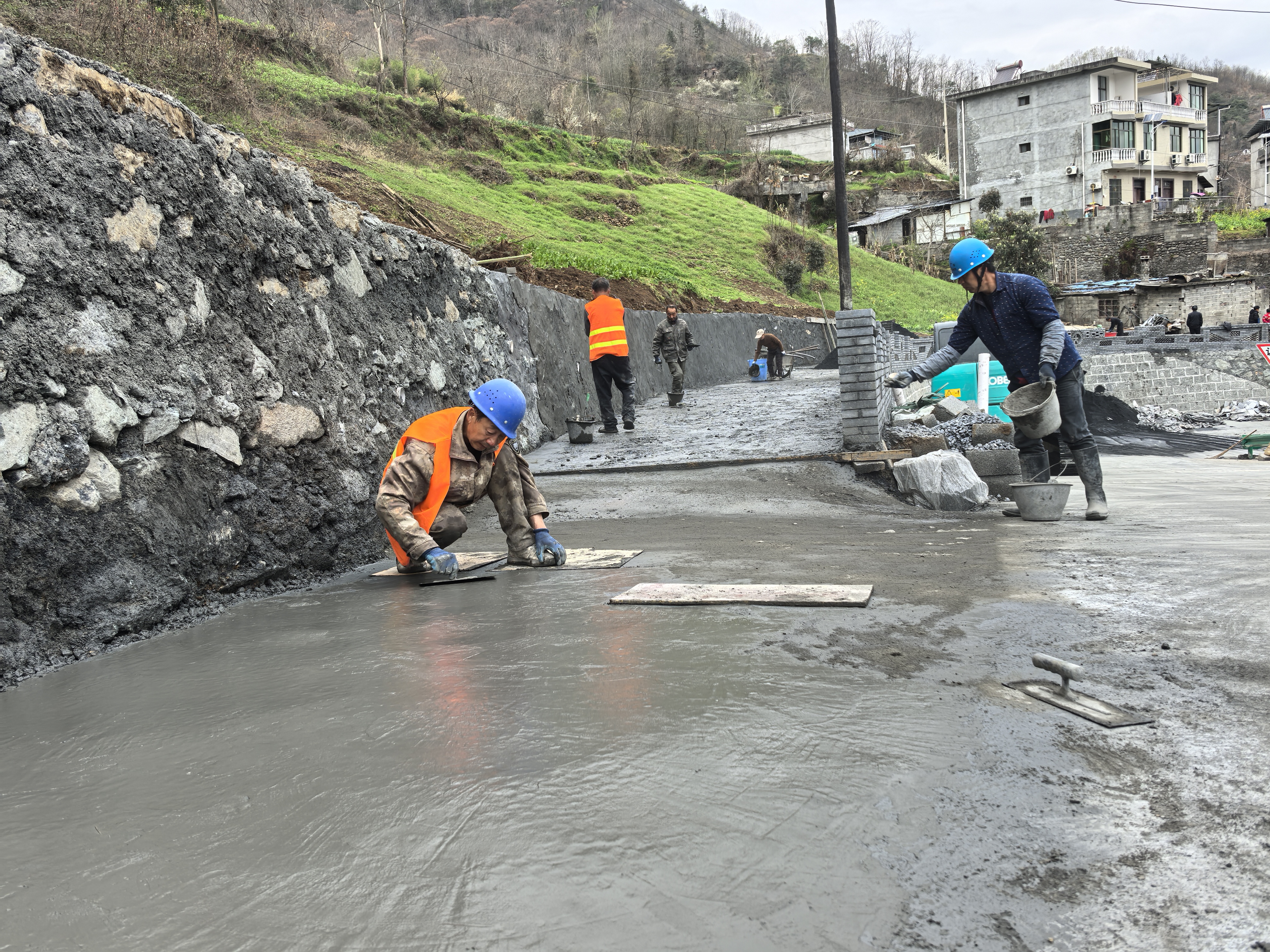 嵐皋縣城關(guān)鎮(zhèn)以農(nóng)村人居環(huán)境整治為抓手,爭取專項資金290萬元,對城關(guān)村28個城鄉(xiāng)接合部節(jié)點進行改造,提升鄉(xiāng)村顏值。目前,8個“口袋公園”和20個微景觀已基本建成,配套的景觀綠化、道路硬化正在加緊施工。圖為工人正在該村五組的一處節(jié)點施工。 張?zhí)毂?張山 攝