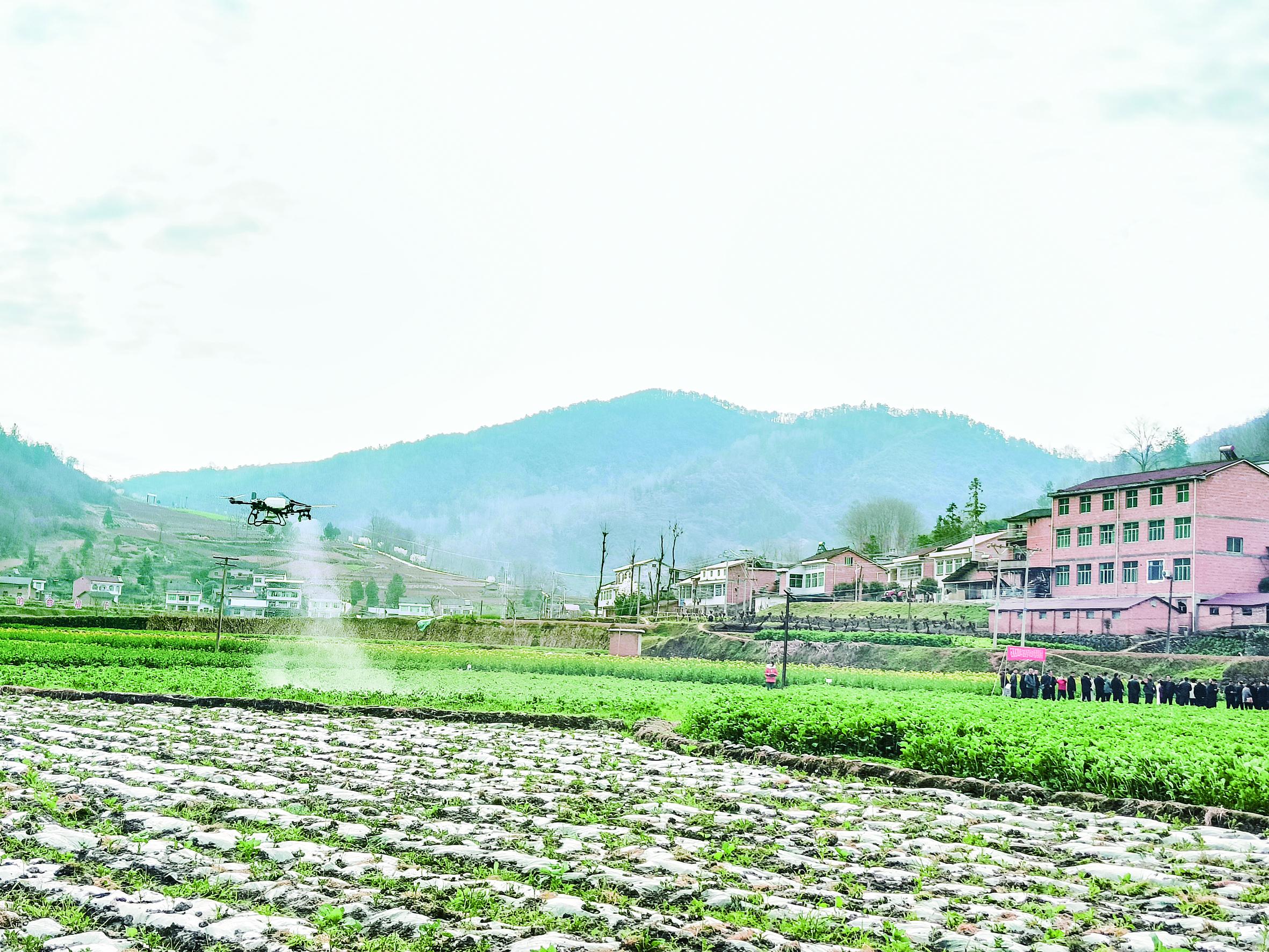3月12日,石泉縣中池鎮(zhèn)開展第三十四屆“科技之春”宣傳月系列活動(dòng)。圖為植保無人機(jī)飛防作業(yè)演示。