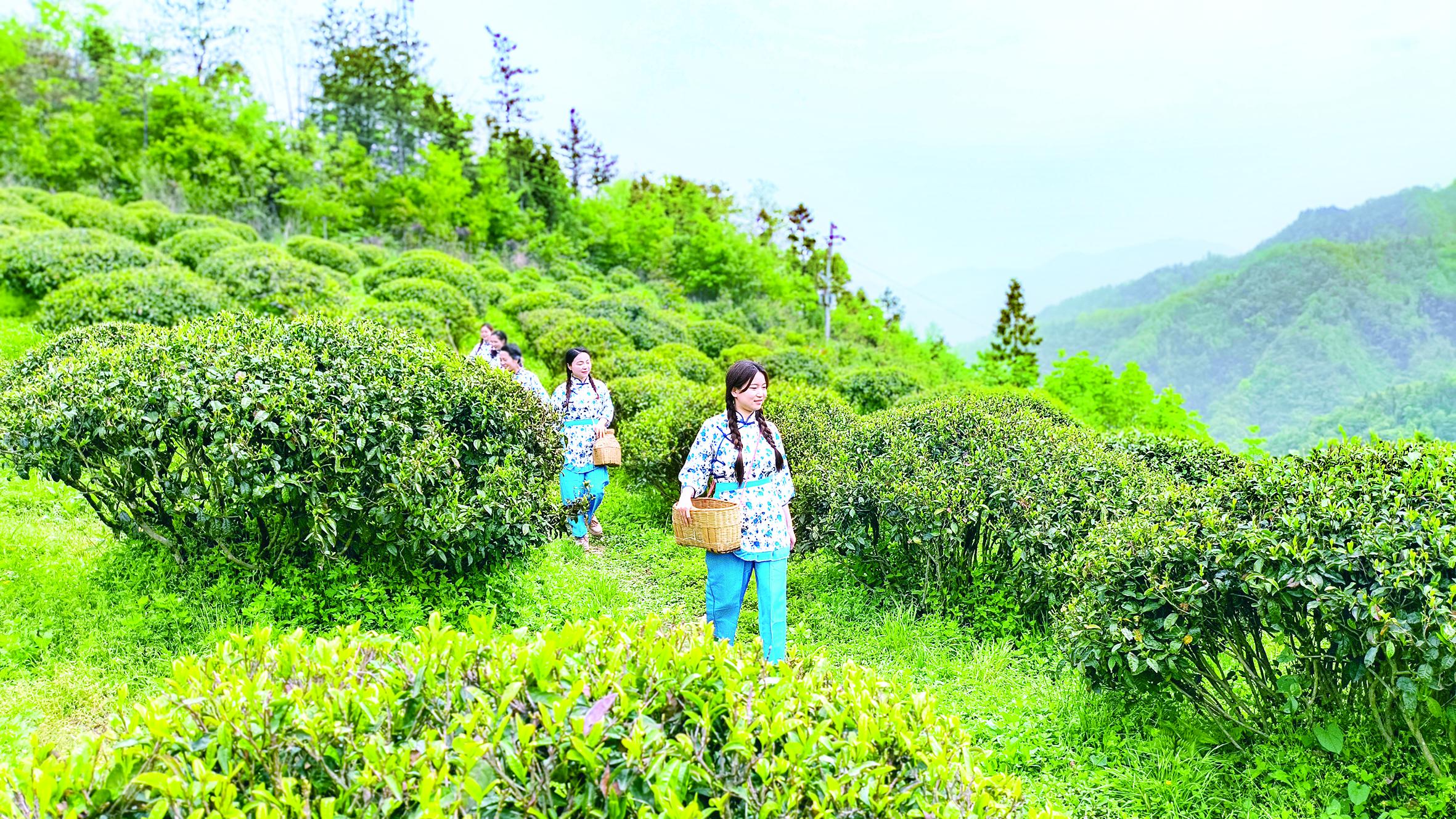 4月7日,紫陽縣雙橋鎮(zhèn)村民走進蓮花村的高山古樹茶園,采摘茶鮮葉。儲茂銀 攝