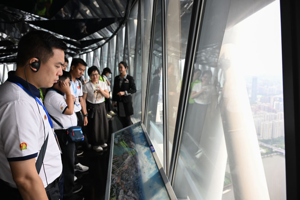 4月13日,越南青少年在廣州塔了解廣州城市建設情況。