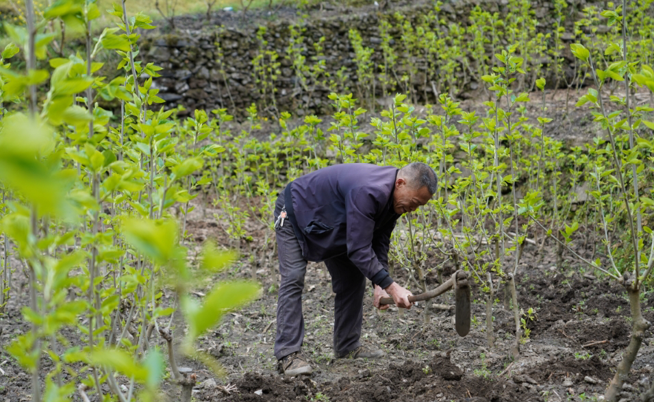 另一邊,在桐木鎮(zhèn)涌泉村桑園基地內(nèi),春蠶備養(yǎng)管護工作也在火熱推進。蠶農(nóng)忙著疏芽、松土、施肥,將腐熟農(nóng)家肥均勻埋入桑根周圍,精心管護每一株桑樹,為春蠶備足優(yōu)質(zhì)“口糧”。在蠶農(nóng)眼中,這片桑園就是家里的“綠色銀行”,承載著增收的希望。