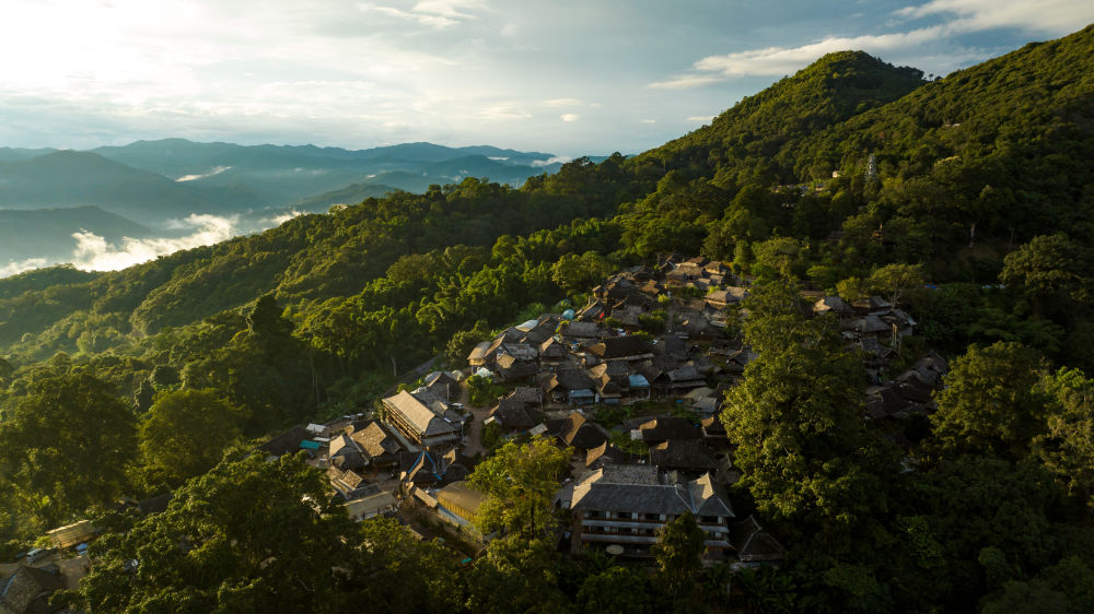 景邁山是云南普洱茶區(qū)最具標(biāo)志意義的一座古茶山,其古茶林是世界上保存完整、面積較大、種植歷史悠久的人工栽培古茶林典型代表。2013年以來,當(dāng)?shù)仃懤m(xù)實(shí)施村寨文物保護(hù)展示、消防防雷及古茶林監(jiān)測項(xiàng)目,優(yōu)先采用傳統(tǒng)工藝、傳統(tǒng)材料,延續(xù)傳統(tǒng)干欄式民居建筑結(jié)構(gòu)、特征和風(fēng)貌,并進(jìn)行適應(yīng)性改造和性能提升,在保護(hù)傳承遺產(chǎn)真實(shí)性、完整性的同時(shí),推動遺產(chǎn)保護(hù)成果惠及當(dāng)?shù)厝罕姟?023年9月,“普洱景邁山古茶林文化景觀”被列入《世界遺產(chǎn)名錄》,成為全球首個(gè)茶主題世界文化遺產(chǎn)。這是被山林與茶園環(huán)繞的云南景邁山翁基古寨一景(無人機(jī)照片,2023年9月18日攝)。